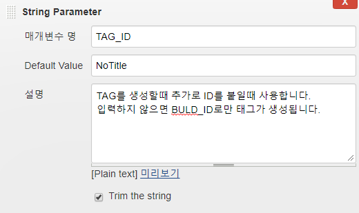 이 빌드는 매개변수가 있습니다 체크 – 매개변수 추가