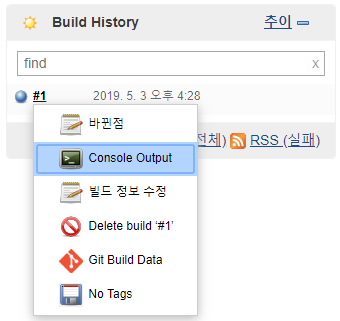 프로젝트 메인 화면으로 돌아와 Build Now 수행합니다. git 주소 등록외에 별다른 작업을 하지 않았으므로 해당 git 프로젝트가 배포서버로 clone됩니다.