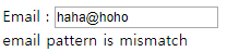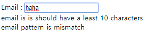 여러개의 유효성 체크를 적용한경우 유효성 결과를 배열( email.errors )을 통해 알수 있어 상황별로 메시지 처리를 할 수 있습니다.