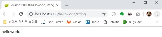 리턴타입을 String으로 지정하면 return값 helloworld가 웹브라우저 화면에 표시됩니다.