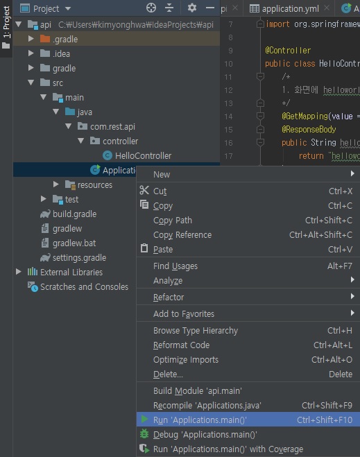 SpringBoot2로 Rest api 만들기(2) – HelloWorld 본문