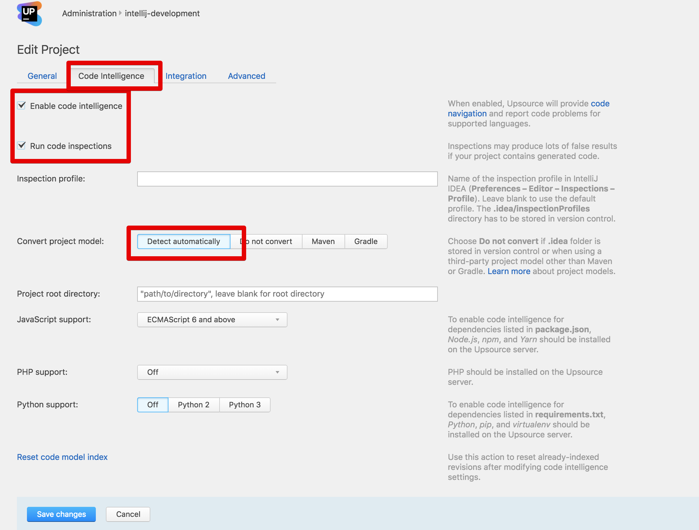 먼저 Upsource의 기본 설정으로는 Code intelligence를 사용할 수 없습니다.