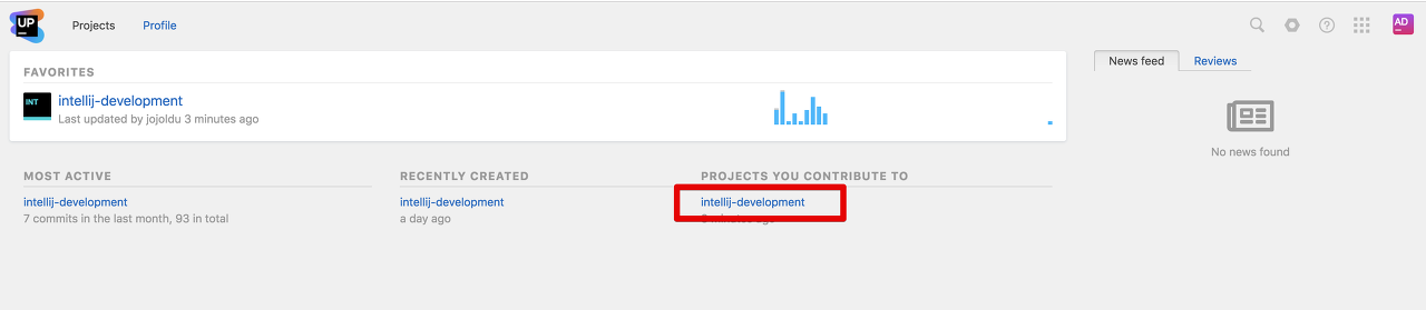 먼저 Upsource로 접속하셔서, Code intelligence를 추가하고 싶은 프로젝트를 선택합니다.