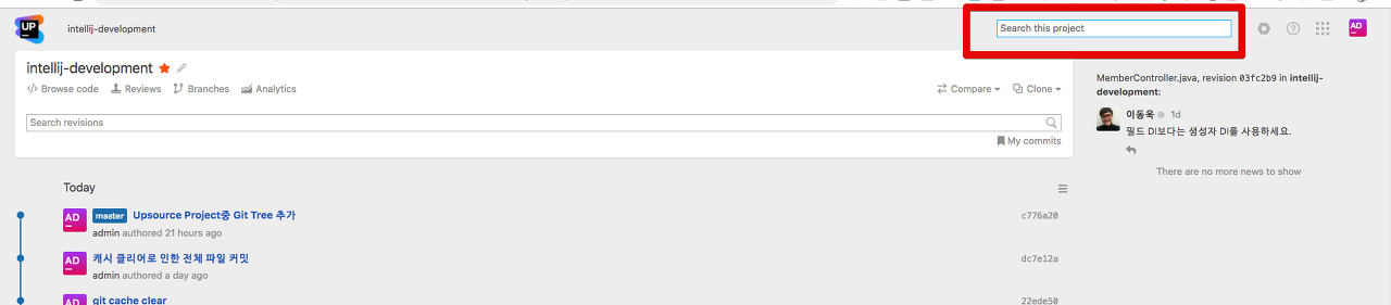 (Upsource 프로젝트 페이지)