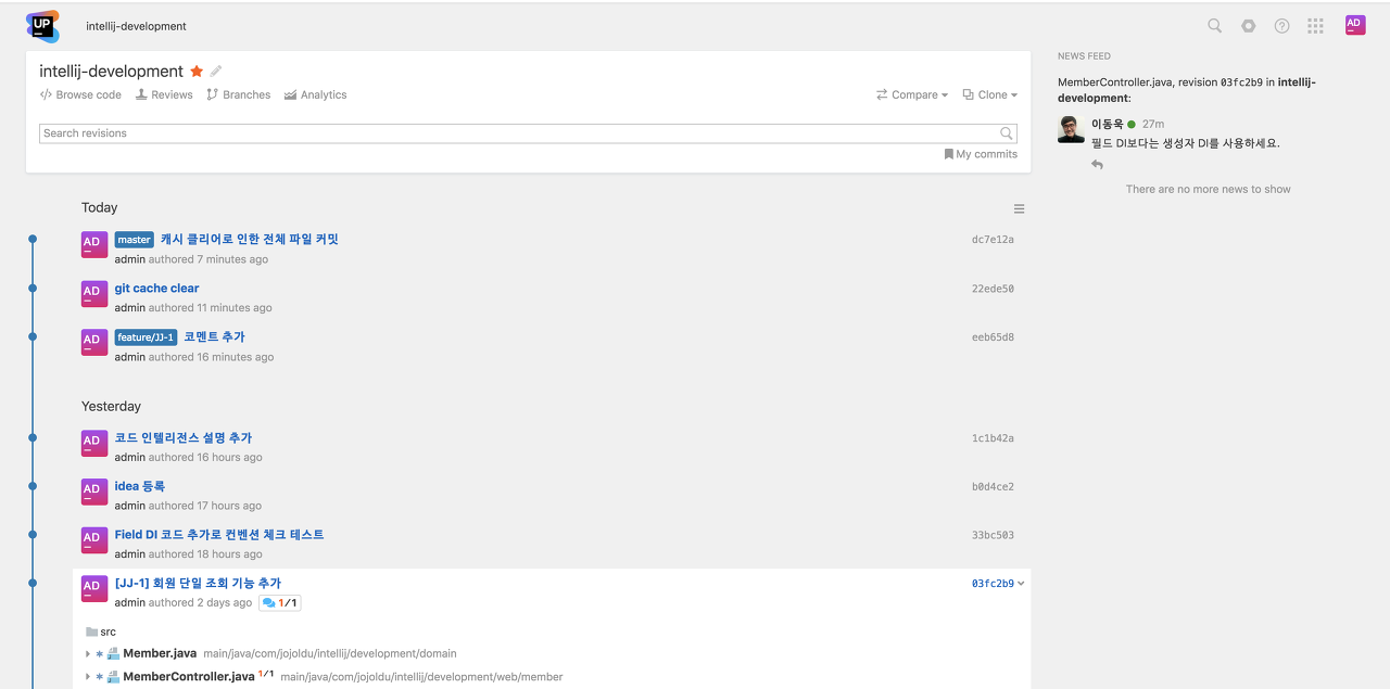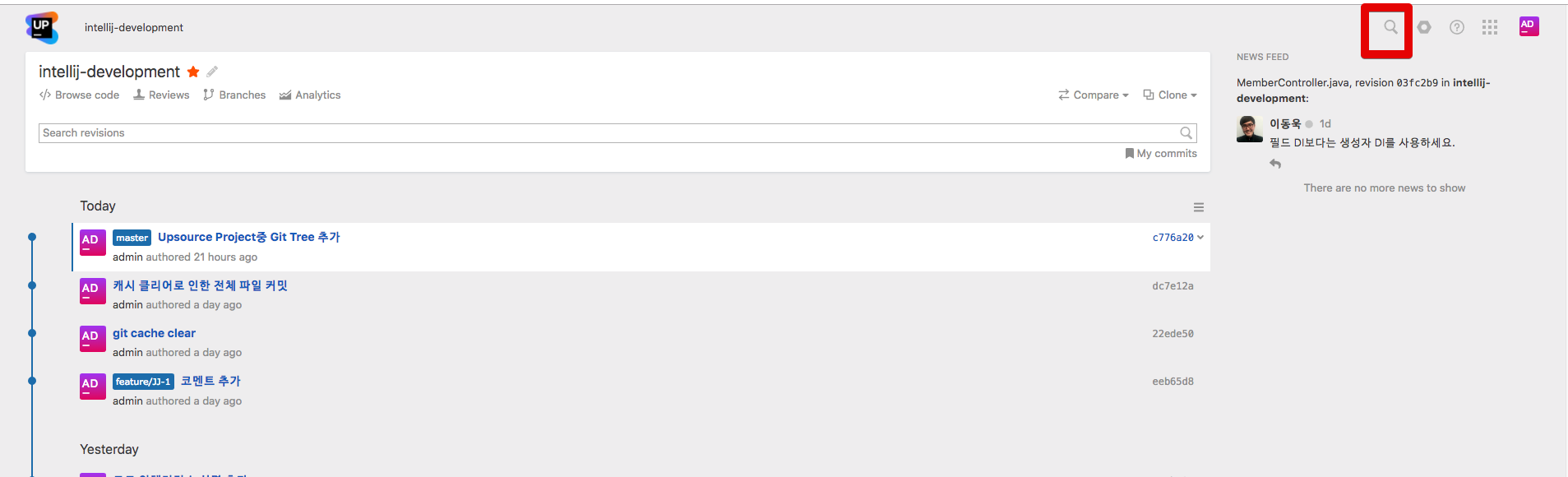 | Upsource 가이드 - 2. Github, IntelliJ와 연동하기 (0) | 2019.07.14 |