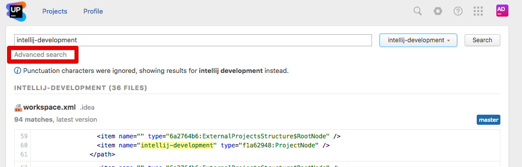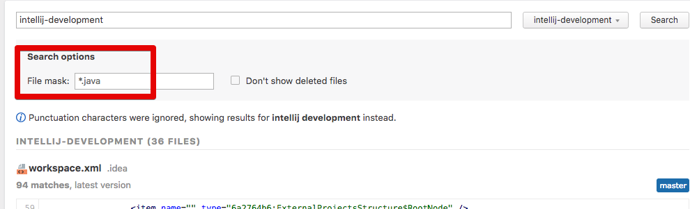 Upsource는 Github 보다 훨씬 파워풀한 검색 기능을 지원합니다.