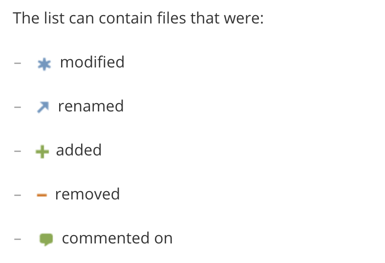 특히 변경 파일의 좌측을 보시면 변경 내용에 따라 상태 버튼이 표기됩니다.