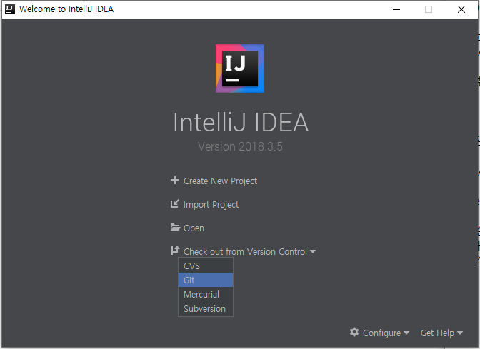 아래 이미지처럼 Git 프로젝트로 시작합니다.